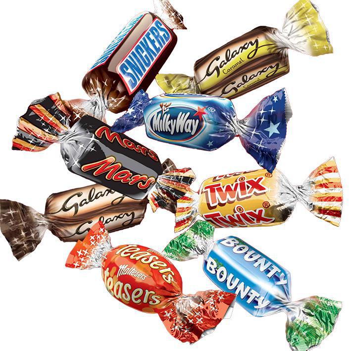 Assortment may include miniatures of: Bounty, Galaxy,Galaxy Caramel, Mars, Milky Way, Snickers, Teasers and/or Twix