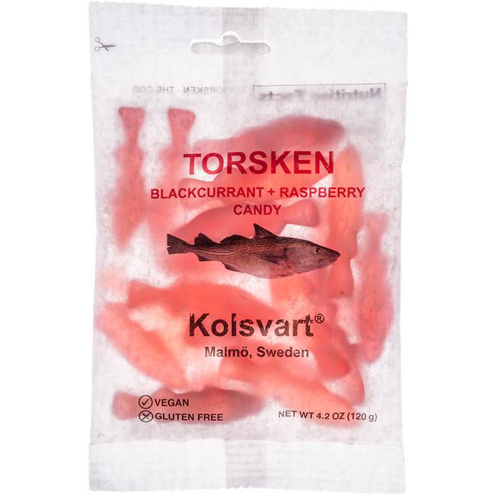 Assortment of Raspberry and Blackcurrant gummy fishGLuten Free • Vegan Imported from Sweden4.2oz bag